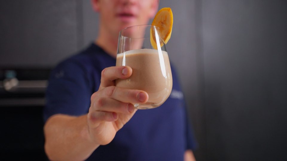 Onze chef Jesper laat in deze video zien hoe je zijn vegan pindakaas shake maakt — romig, voedzaam en goed voor meer dan 30 g eiwit per shake.