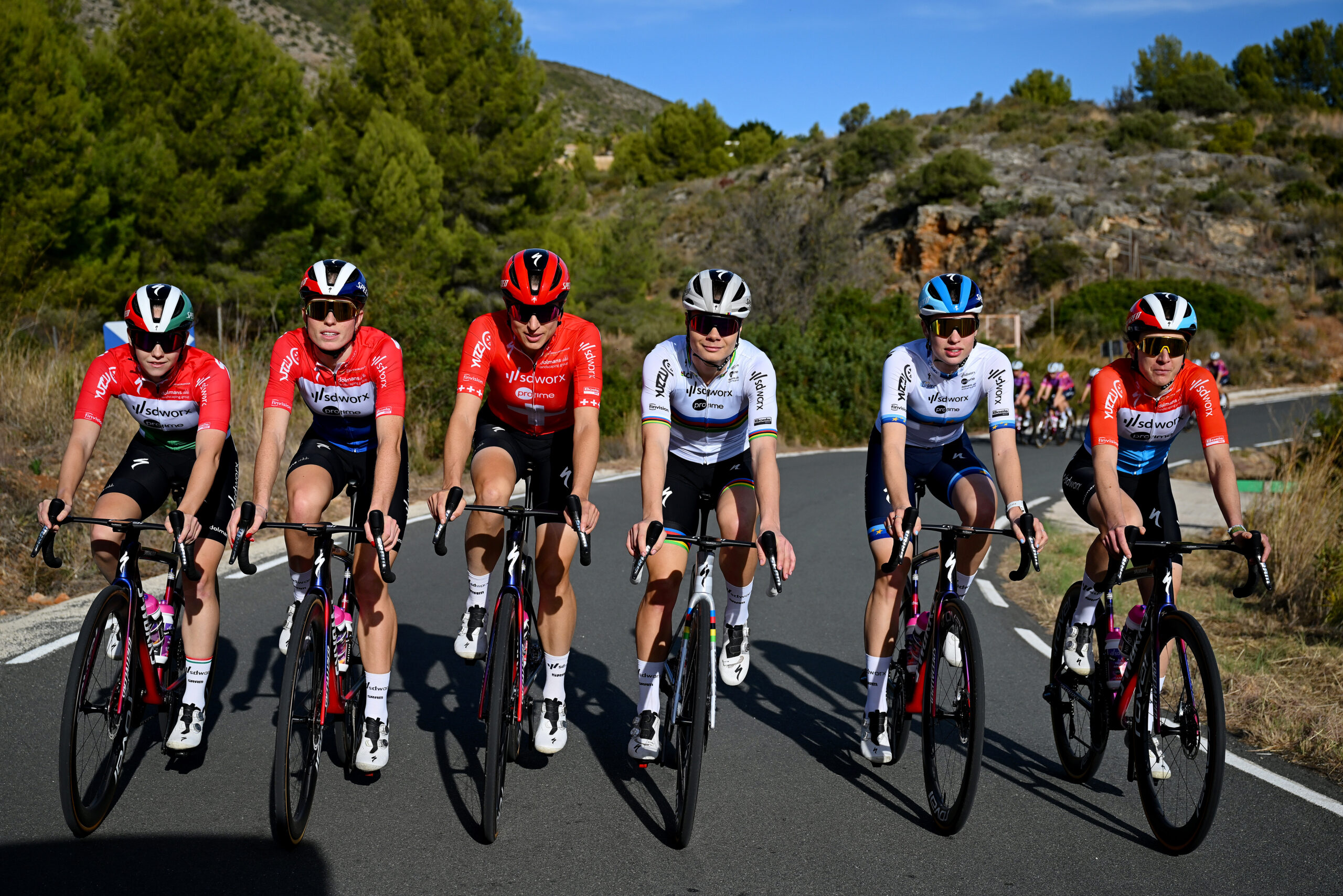ALICANTE, SPAIN - DECEMBER 12: (L-R) Blanka Vas of Hungary, Demi Vollering of Netherlands, Marlen Reusser of Switzerland, Lotte Kopecky of Belgium, Mischa Bredewold of Netherlands and Christine Majerus of Luxembourg during the Team SD Worx - Protime 2024 - Training Camp on December 12, 2023 in Alicante, Spain. (Photo by Dario Belingheri/Getty Images)